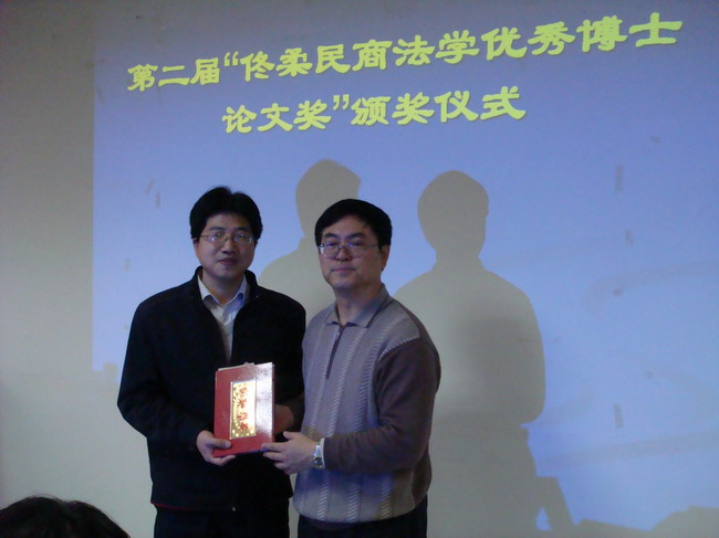 2007年11月24日上午八点半,在中国人民大学明德楼法学院725会议室举行了第二届“佟柔民商法学优秀博士论文奖”颁奖仪式。中国人民大学法学院院长王利明教授和中国人民大学民商事法律科学研究中心主任杨立新教授分别为第二届佟柔民商法学优秀博士论文奖获奖者北京亚洲成人在线一二三四五六区法学院讲师周友军博士、福建师范大学法学院副教授张莉博士颁奖,并勉励他们再接再厉,在今后的学术道路上取得更大的成就。