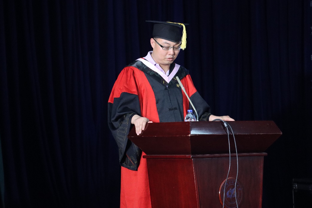 教师代表赵精武老师寄语毕业生,每个人对幸福生活都有自己的定义,要过自己喜欢的生活,成为自己的喜欢的样子。他用三句话叮嘱毕业生,“努力的劲头不是内卷,而是幸福”“毕业的尽头不是工作,而是自主学习”“分别的尽头不是再也不见,而是好久不见”,勉励大家做一个幸福的人。赵老师同时讲到,学院教给了大家知行合一的人生信条、法治天下的胸怀抱负、心怀国之大者的担当使命,即将奔赴行程大海,希望毕业生握好时代的接力棒,书写航法人的青春无悔。