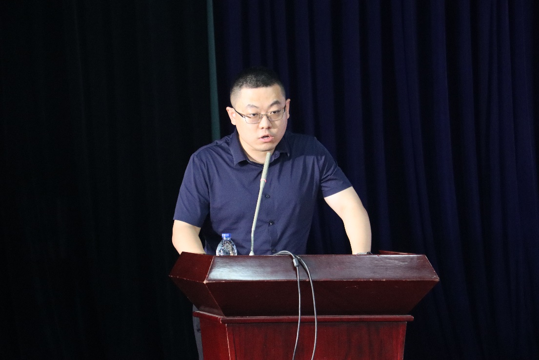 在热烈的掌声中,泮伟江副院长致辞。他向2023届毕业生致以热烈的祝贺和美好的祝愿,同时也向法学院所有参与人才培养的教职员工表示衷心的感谢和崇高的敬意。泮伟江副院长肯定了同学们在各个领域的突出表现,在为大家感到高兴和自豪的同时,也对同学们提出殷切期望,祝愿大家读好社会这所大学校,过好幸福的一生。他指出,在自己写过的关于《理想国》的文章中提到,社会是一所大学校,社会这所大学没有教科书。同学们在校园中的生活是稳定的,是有预期的,但踏出校门,步入社会,就需要飞向一个未知的领域独立展翅翱翔。他提出,今后的生活中,纵然大家会认识到世界的不完美,认识到自己的不完美,也要学会面对现实,要努力创造价值。他期盼大家能够与生活和解,与自己和解,保持内心的美好和纯真,保持对美好事物的感受力。最后,泮伟江副院长勉励毕业生无论走到哪里,无论从事什么工作,都要保持航法人的本心,胸怀正义,眼里有光,心中有爱。