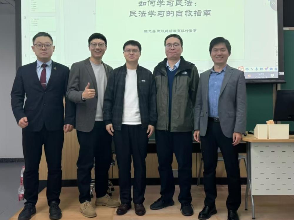 本次讲座由陈元鑫老师担任主讲人,中国政法大学民商经济法学院副教授缪宇、中央财经大学法学院副教授徐建刚、中国政法大学民商经济法学院讲师张焕然作为与谈嘉宾,为现场听众带来了一场实用生动的民法学习方法分享会。
