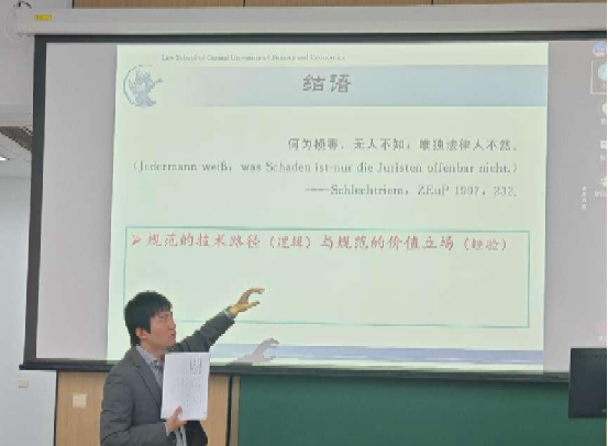 讲座最后,徐老师总结道:制度逻辑本身就是在表达价值,财产损害学说的变化反映出制度背后的价值衡量;同时,在信息时代,数据的无形性和传播速度的迅猛,使得侵权行为更加隐蔽和复杂,传统法学也要看到传统侵权学说在应对信息侵权、数据侵权方面的不足,并积极寻求与现代技术发展相适应的理论创新。