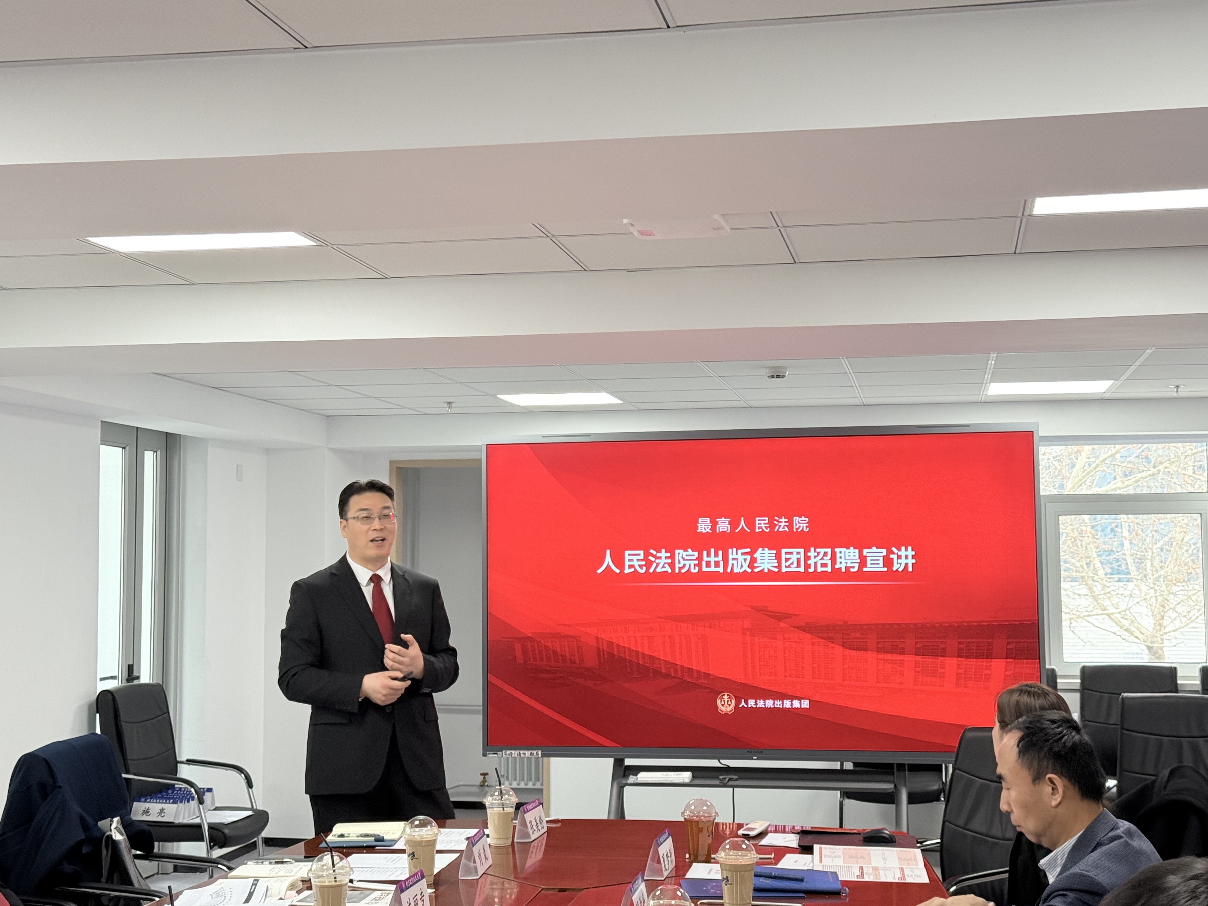 袁登明对北航法学院在学院建设、学术科研等方面取得的成绩表示充分赞赏,并感谢学院在师资、人才、科研等领域对出版社工作的大力支持。袁登明对人民法院出版社的发展沿革、业务模块、工作成效做了全方位介绍。他表示,近年来,人民法院出版社与北航法学院在人工智能法、网络信息法等方面深入合作,为推动数字法治服务法治中国建设做出积极贡献。希望双方进一步强化交流,继续围绕数字法治、司法大数据等方面建设内容深入合作,共建一流平台、共育一流人才。出版社其他负责同志就招录岗位需求、工作条件、职业发展等同学们关心的内容与参会学生代表进行深入分享。