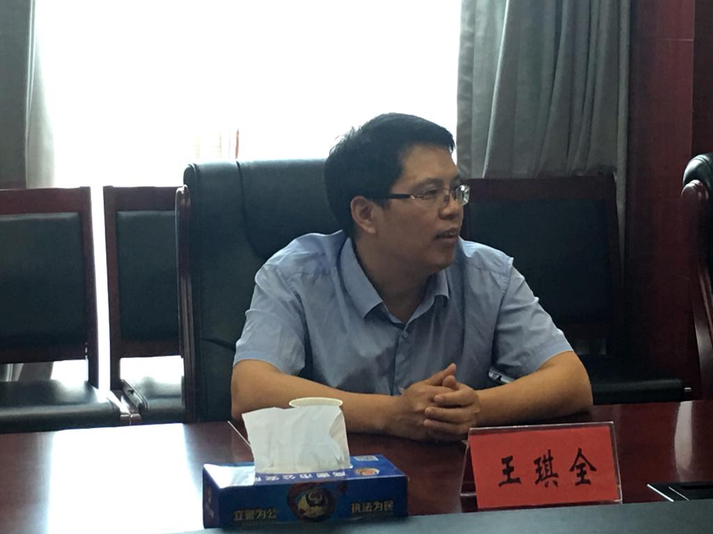8月9日,北航法学院党委书记王琪全、副院长泮伟江一行赴山东省高密市公安局看望我院实习学生并了解学生暑期专业实习情况。高密公安局王波政委、政治工作室郑子金主任等领导和各大队负责人接待了王琪全书记一行。带队老师吉冠浩陪同参加了交流活动。
