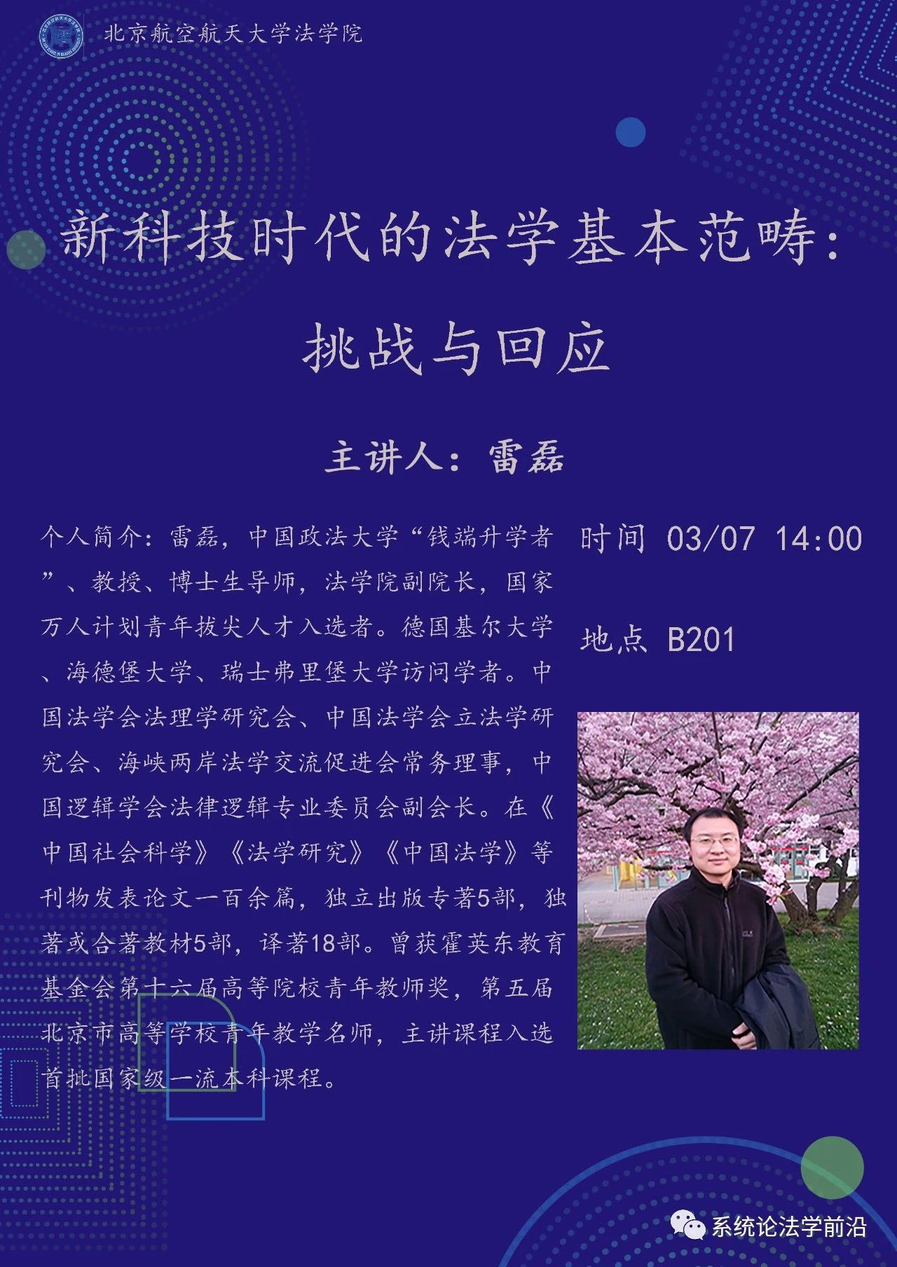 讲座预告|雷磊:新科技时代的法学基本范畴:挑战与回应