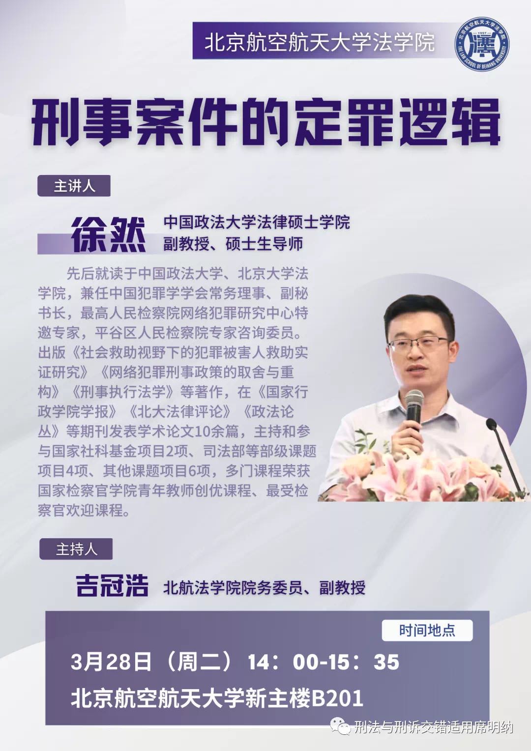 讲座预告 | 徐然:刑事案件的定罪逻辑