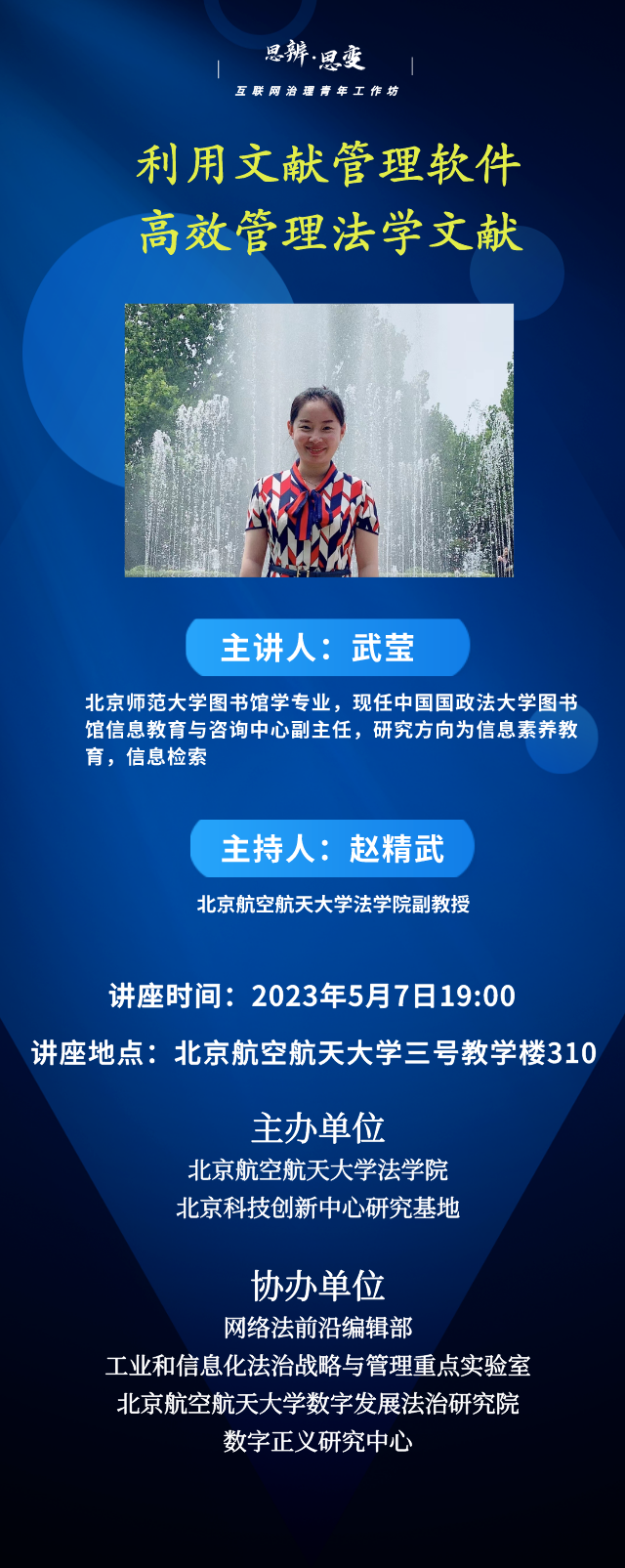 “思辨·思变”互联网治理青年工作坊讲座预告|武莹:利用文献管理软件高效管理法学文献