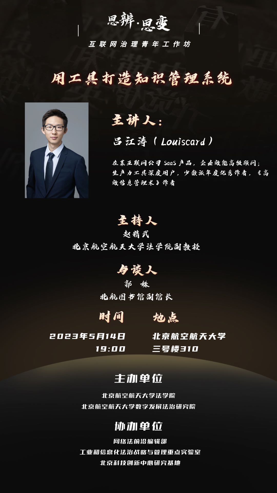“思辨·思变”互联网治理青年工作坊讲座预告 | 吕江涛:用工具打造知识管理系统