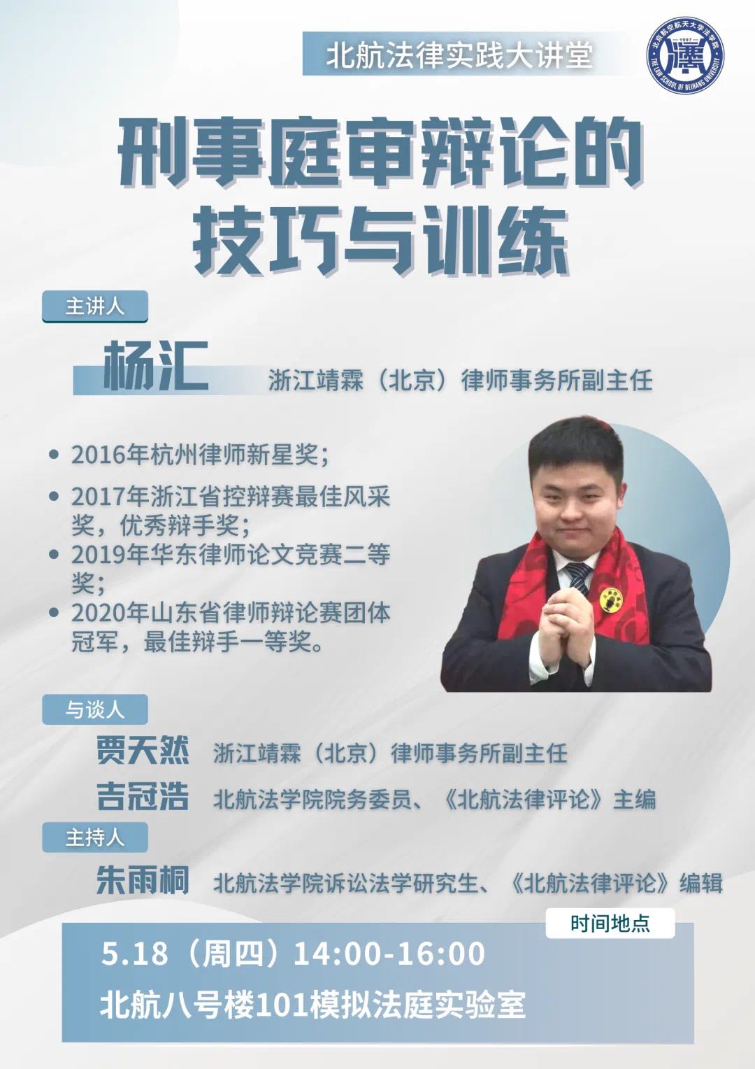 法律实践大讲堂预告 | 杨汇:刑事审判辩论的技巧与训练