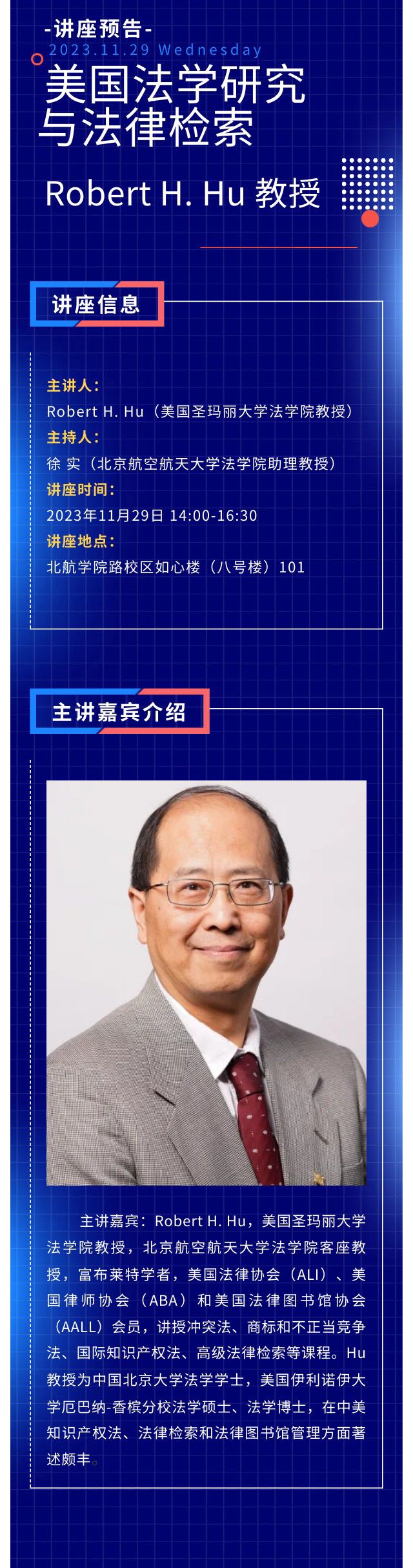 讲座预告|Robert H.Hu :美国法学研究与法律检索