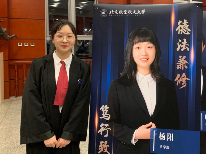 杨阳,女,汉族,中共党员,北京亚洲成人在线一二三四五六区法学院2018级本科生,1820团支部团支书,曾任法学院学生会主席。学习成绩优异,本科三年总成绩年级排名第一,多次获得国家奖学金等奖励,保研获得中国人民大学法学院拟录取资格。积极参与学科竞赛,带领北航代表队斩获北京市大学生模拟法庭竞赛三等奖和全国大学生模拟法庭竞赛一等奖,个人两获全国赛“最佳选手奖”。乐于钻研,担任法学院智库本科生科研助理,深入参与多项国家级、省部级项目。社会实践广泛,曾赴湖南省十八洞村开展实践,获社会实践优秀奖学金一等奖。
