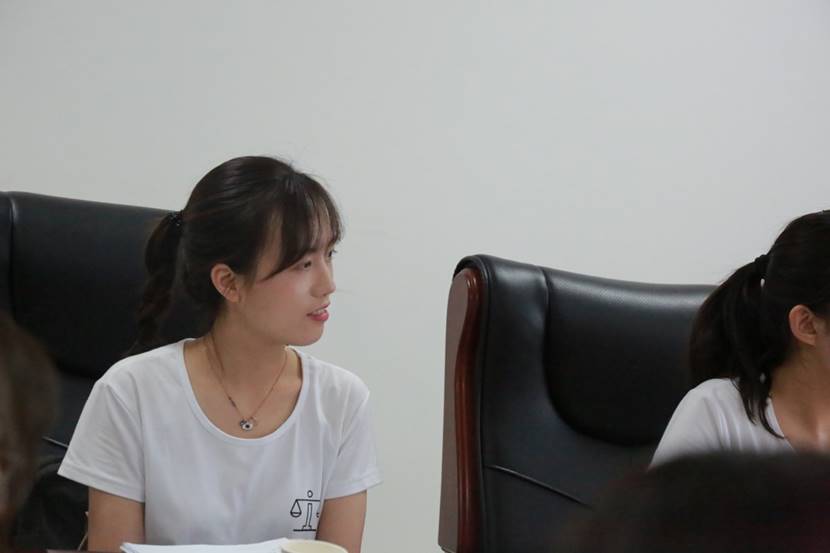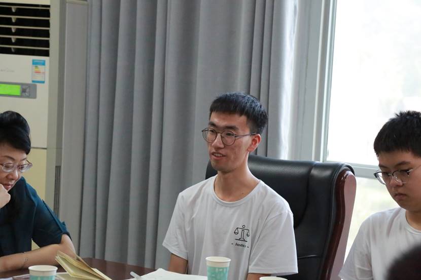 其次发言的是金明区院的邱泽昱、杨阳、霍睿博同学的发言,他们在实习中对于案卷已经非常熟悉,经常向孙科长汇报看卷成果,也经常得到孙科长的指点,在这过程中他们深刻认识到自己的不足,同时在一次次汇报学习中不断进步。特别地,他们与公诉科的检察官们进行了一次模拟法庭的辩论,表现不俗,得到了孙科长的充分肯定。孙科长同时提到,卷宗的重复阅读对于办案人员来说是极其基础且重要的一个环节。对卷宗的绝对熟悉有利于案件的展开。孙科长肯定了同学们发现问题的独到眼光与完成任务的认真态度,同时认为大学生身上也有在职检察官们值得学习的地方,给予了同学们高度评价。魏主任则送给在座同学们三句话,一是给自己一个准确的人生规划,而是给自己一个明确的目标追求,三是对自己有一个正确的心态分析。