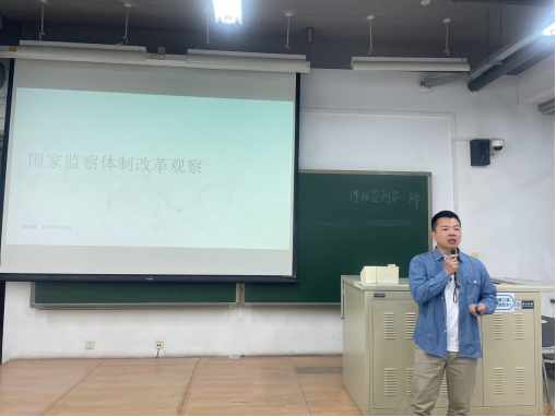 第二期讲座围绕“国家监察体制改革”展开,由吉冠浩老师主持,邀请了中央纪委国家监委干部杨林毅担任主讲人。首先,杨林毅老师简述了他的职业经历,并以两个2011-2013年的人大代表贿选案为视角,带同学们窥视了党的十八大以前的政治生态。其次,杨林毅老师以两条路径、六个关键词为同学们介绍了如何在法律层面理解国家监察体制改革。第一条路径是“从分裂割据到大一统”,即在国家监察体制改革后,公职人员违纪违法犯罪行为从原本的违反党政纪行为由纪检监察机关管辖、职务犯罪行为由检察机关管辖的分散体制改为均由纪检监察机关管辖的统一体制。第二条路径是“从唯办案弱监督到监督办案两手抓”。明确政治监督,坚持监督是第一职责、基本职责,实现从从被动调查到主动监督的转变。此外,杨老师也对改革提出了一些反思,如纪检监察机关的权利制约和监督;被调查人权利保障以及一些履行监督职责时的技术问题等。最后,杨林毅老师提到了职业选择与自我成长。他认为,问题意识是最重要的,同时还应保持批判思维和质疑精神,警惕权威和权力。