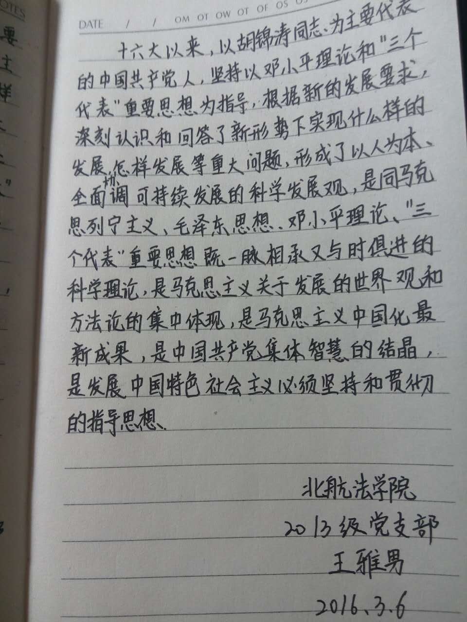 2016年,党中央决定在全体党员中,开展“学党章党规、学系列讲话,做合格党员”(以下简称“两学一做”)学习教育活动。2016年3月2日开始,北京亚洲成人在线一二三四五六区法学院2013级本科生党支部(以下简称1320党支部)在支部书记李辉的带领下,深刻领会“两学一做”学习教育精神,深入学习党章包含的思想精髓和时代要求,全面启动“手抄党章100天”活动。