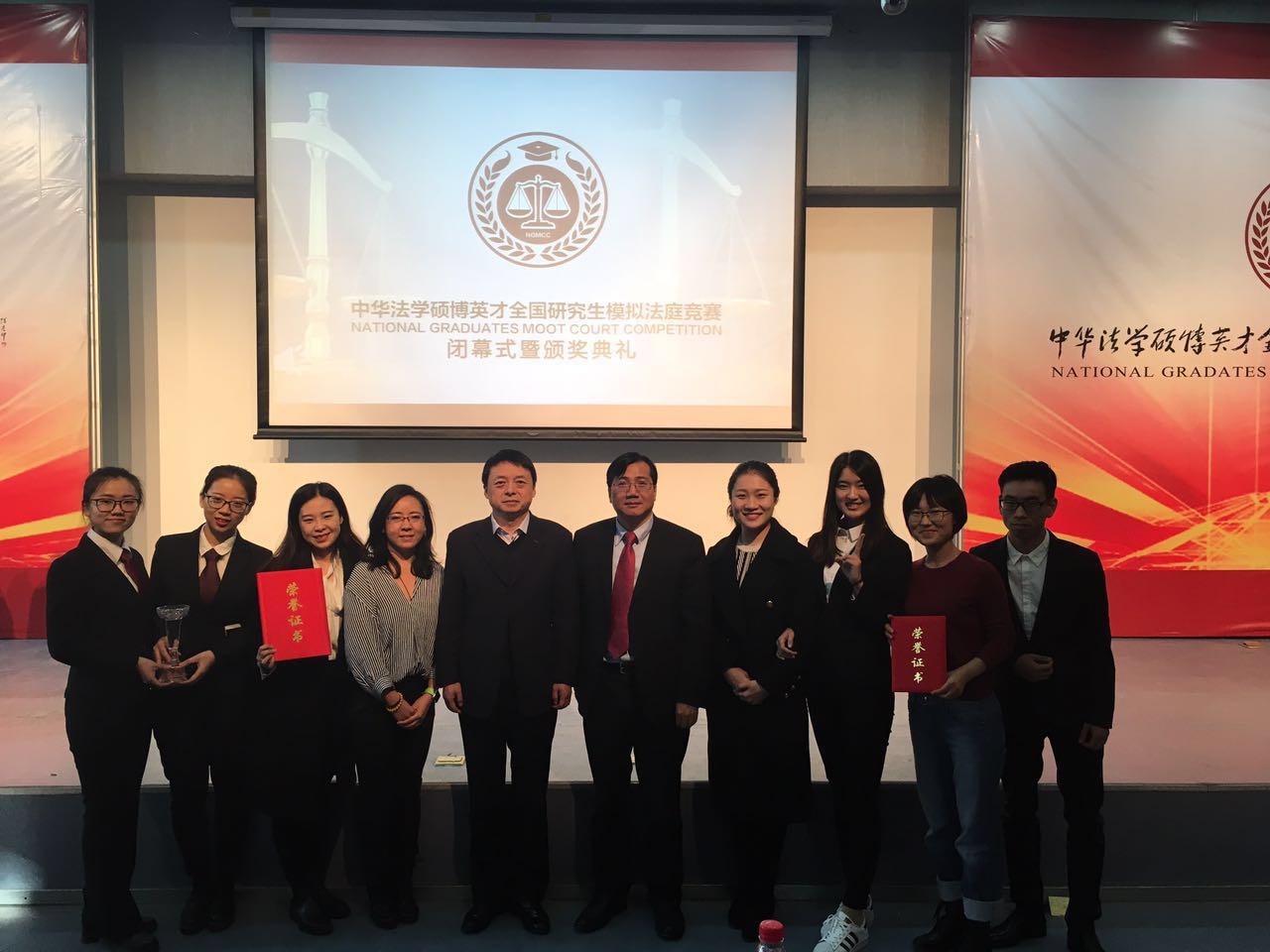 我院由2016级法学硕士生张文、方硕、李贝妮、徐天宇、张一宸、赵绍斌组成参赛队伍,裴炜副教授任指导教师,辅导员姜荣担任领队,积极备战,经过两天半的紧张比赛,以优异的表现从各参赛队中脱颖而出,荣获大赛冠军与最佳指导老师两项大奖,这也是我院法学研究生首次在全国级模拟法庭赛事上捧得冠军奖杯。