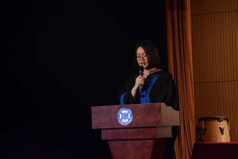 北航法学院2018届本科生张睿思作为学生代表发言。张睿思同学的发言中,既通过回顾本科生活的点滴抒发了即将毕业的不舍之情,向2018届本科生提供良好发展平台与环境的北航及法学院致以了诚挚的谢意,也对四年来为2018届本科生完成学业精诚教学的师长、默默支持的家长及陪伴同行的同学表达了感恩。