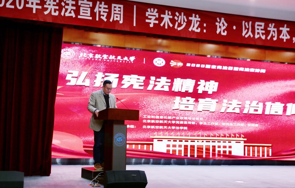 2020年12月4日是我国第七个宪法日。为宣传贯彻党的十九届四中、五中全会精神与中央全面依法治国工作会议精神,由工业和信息化部产业政策与法规司、北航党委宣传部、学工部、研工部、校团委主办,北航法学院承办“弘扬宪法精神,培育法治信仰”2020年宪法宣传周系列活动,聚焦生活中的宪法、法律知识,开展普法沙龙、校园普法宣传、宪法晨读等一系列内涵丰富、受众广泛、主题鲜明、形式多样的主题活动,面向全校师生宣传法律文化。