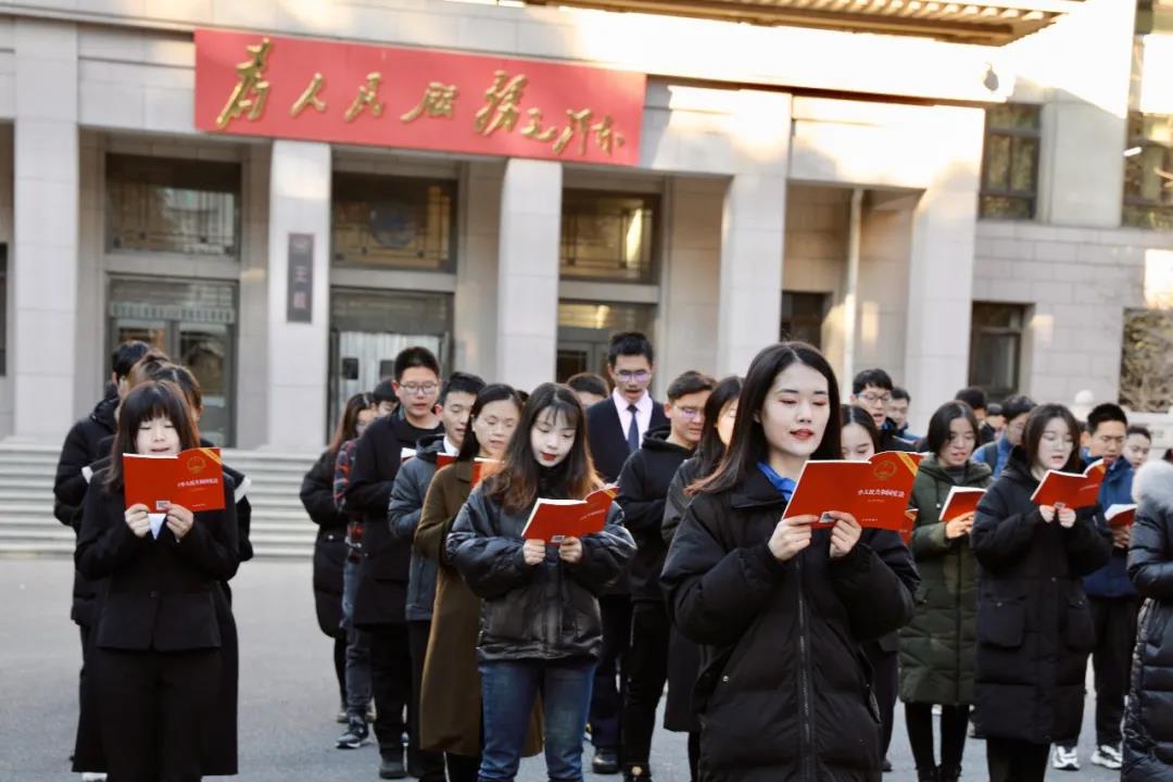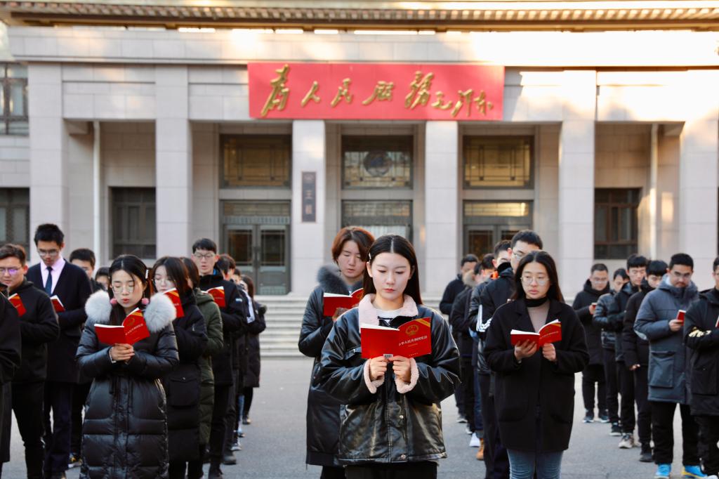 12月4日早8时,法学院于主楼广场举办宪法晨读活动,以推动宪法深入人心,为法治建设凝魂聚力。在鲜红的五星红旗下,在领读人的带领下,同学们齐声宣读《中华人民共和国宪法》,于朗朗读书声中加强对宪法的理解。