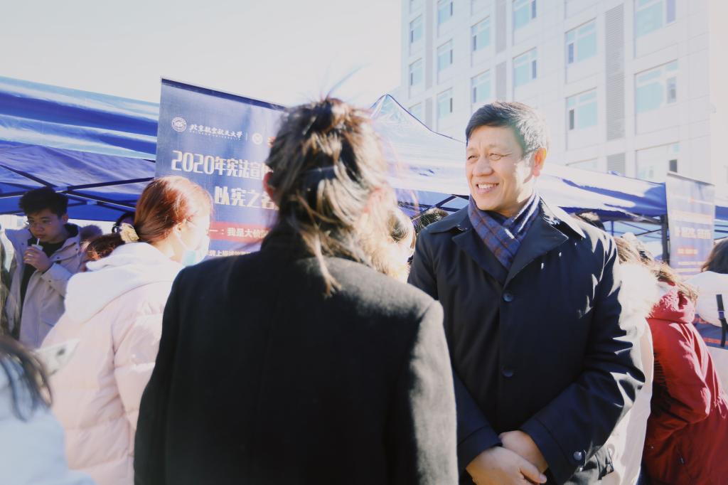 12月4日中午,法学院于新北区广场举办了以“知·以宪之名,守法于行”为主题的外场活动。此次活动设置了“我是大侦探”、“法律知识大转盘”、“权利的游戏”、“民法典与我”、KEEP打卡等趣味活动项目,吸引了众多北航学子参与。徐惠彬校长也亲临现场与同学们亲切交流。