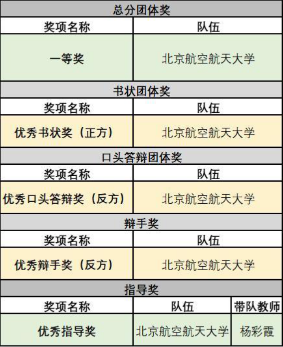 经过两天的激烈角逐,我校代表队取得总分团体一等奖、正方优秀书状奖、反方优秀口头答辩奖、反方优秀辩手奖(叶川嘉)、优秀指导奖(杨彩霞)共五项奖项。