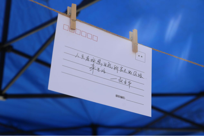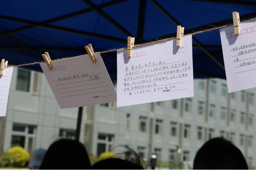 在“定格春日美好,共书环境法学”环节中,参与者在明信片上书写着与环境法相关的话语和理解,用明信片的方式交流活动心得。