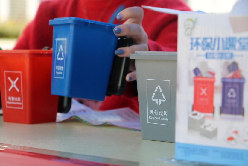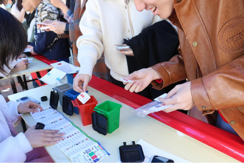 在“‘实战’垃圾分类”游戏中,参与者们通过将随机卡片上书写的垃圾进行分类投放,加强了同学们对垃圾分类的了解和认识。