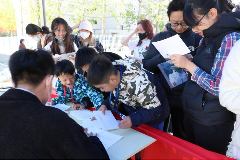临近正午,外场志愿者们开始投入到志愿活动工作中,来往新北区的师生、小朋友等参与到活动中。小朋友们的加入更是为外场增添了一抹亮色,也使得外场活动的气氛更加活跃。