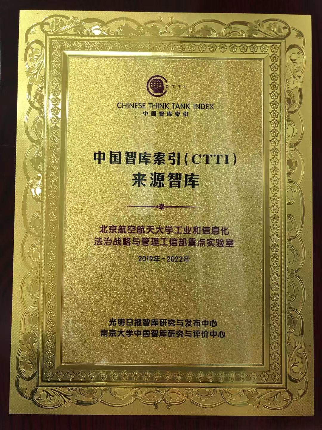工业和信息化法治战略与管理工信部重点实验室于2019年12月正式入选中国智库索引(CTTI)来源智库(2019-2022)。中国智库索引是由南京大学、光明日报社联合研发的中国智库数据管理与搜索系统。此次入选标志着工业和信息化法治战略与管理工信部重点实验室在服务于国家现代社会工业和信息化发展战略,促进和加强工业和信息化领域技术创新和制度创新再上一个新台阶。