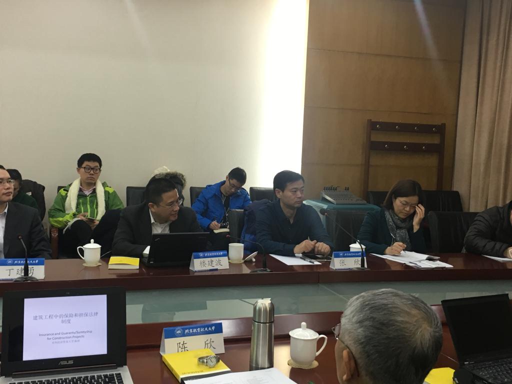 论坛主讲人由对外经贸大学陈欣教授、联合建管(JCM)国际工程技术研究院邱闯院长担任。他们的演讲题目分别为“建设工程中的保险与担保制度”和“建筑师责任制与建设监理制的现状、问题与发展”。陈欣教授兼任中国保险法学研究会副会长,是国际建设工程保险领域的权威专家,邱闯教授则兼任英国皇家特许建造学会(CIOB)中国北方区主席、中国国际经济贸易仲裁委员会和北京仲裁委员会仲裁员、清华大学国际工程项目管理研究院特聘教授等,是国内建设工程管理等方面的著名专家。论坛与谈人包括丁建勇(北京仲裁委员会仲裁一处处长)、檀中文(中航勘察设计院总法律顾问)、张欣(东方资产投资法务部总经理)、楼建波(北京大学法学院教授、北大房地产法研究中心主任)、周学峰(北航法学院副教授、北航工业与信息化法治研究院副院长),另有来自国内学术界、实务界的专家学者近20人与会。